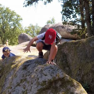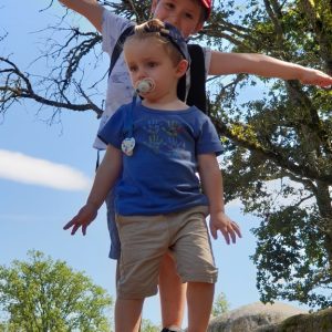 Nous reprenons notre exploration du site, escaladant un roc ici, un autre là, les enfants sont ragaillardis de pouvoir courir, sauter de pierre en pierre ; enfin surtout Antoine, Gabriel échaudé, bien que vaillant, reste plus prudent ☺☺☺