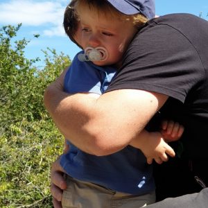 Plusieurs haltes sont nécessaires. Gabriel du haut de ses 3 ans peine à suivre son frère et c’est mon mari qui en fera les frais.