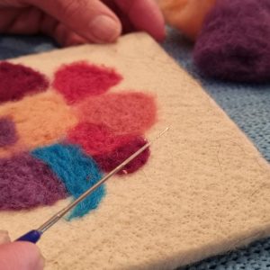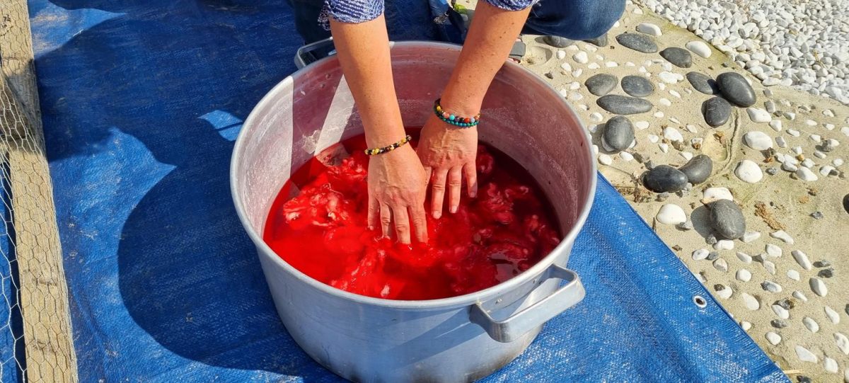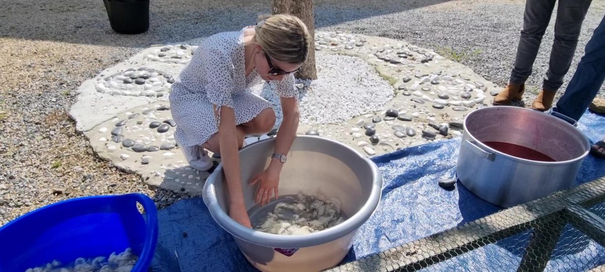 Françoise nous explique qu’il faut manipuler la laine avec beaucoup de précaution pour ne pas la feutrer.