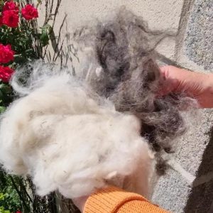 La laine va tremper dans une eau à 55° avec du savon de Marseille (ou du fiel de bœuf). Il lui faudra 2 trempages pour être dégraissée avant de sécher à l’air libre, à l’abri du soleil et bien à plat.