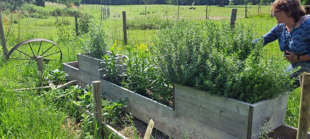 La visite se poursuit jusqu’aux cultures des plantes tinctoriales qui seront utilisées pour colorer la laine.