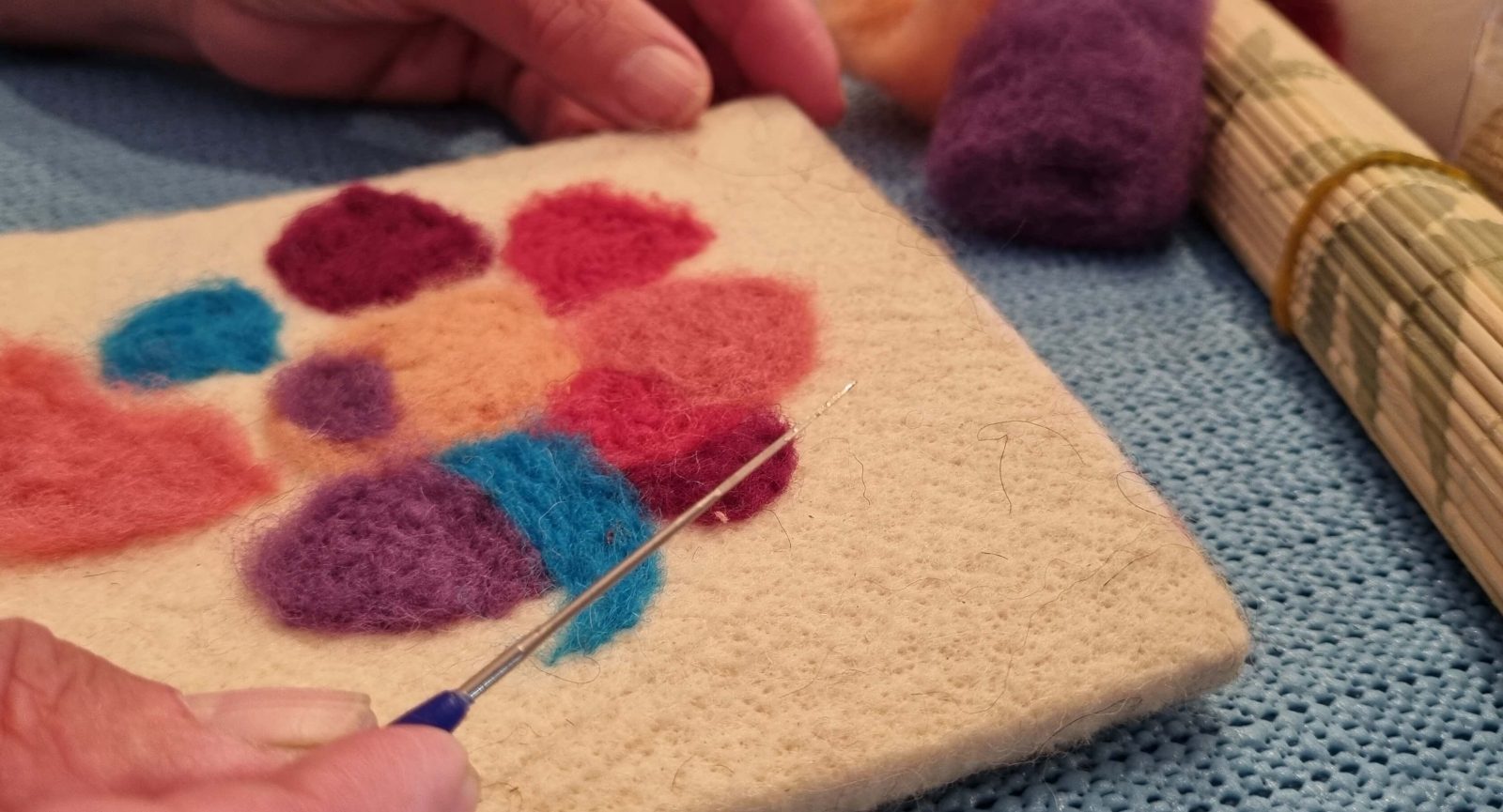 Françoise nous explique qu’il faut manipuler la laine avec beaucoup de précaution pour ne pas la feutrer.