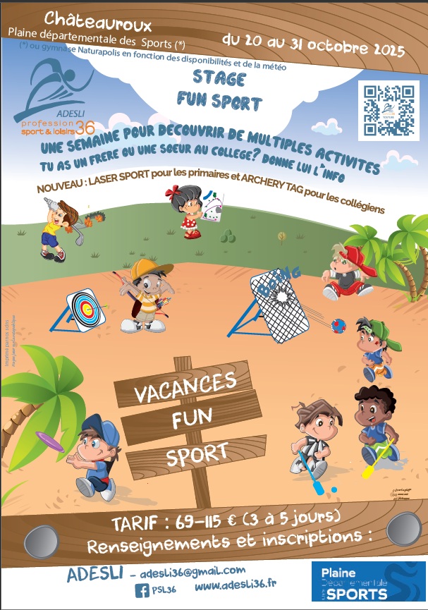 L’ADESLI organise à Châteauroux des stages multisports à destination des enfants de 6 à 14 ans pour les vacances d’avril, été et octobre.