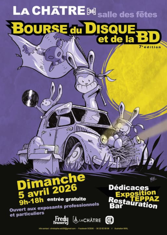 Septième bourse du disque et de la BD (dédicace, expositions...) à La Châtre, à la salle des fêtes. Entrée gratuite.