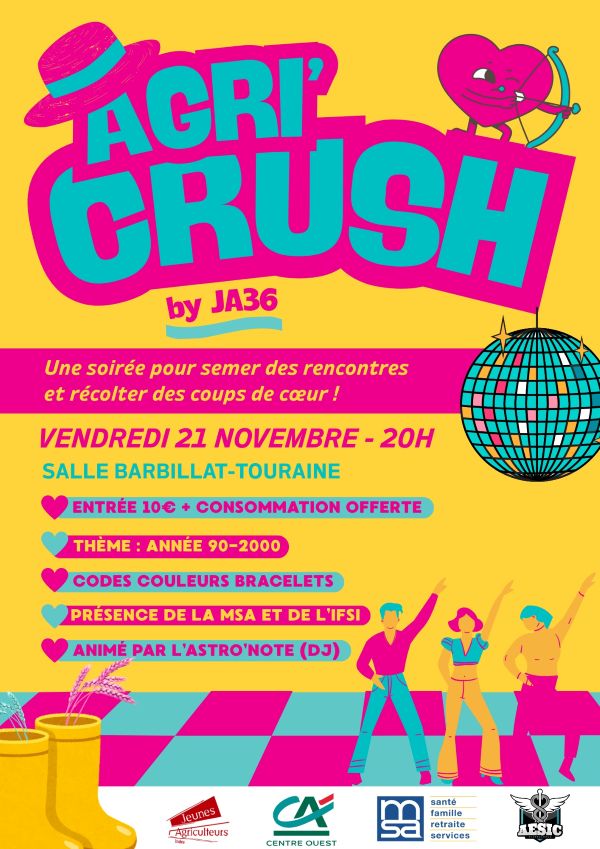 Venez participer à l'Agri’Crush, soirée festive et conviviale à Châteauroux. Une soirée pour semer des récolter des coups de cœurs !