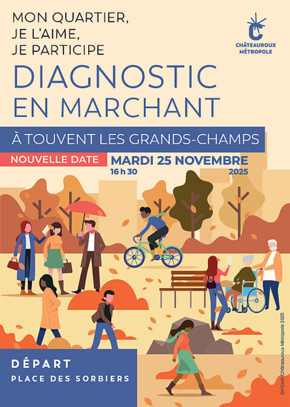 Nouvelle date pour venir échanger, observer et partager vos idées lors du diagnostic en marchant organisé par Châteauroux Métropole.