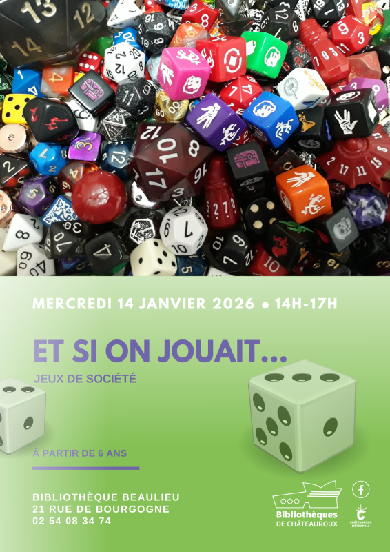 Le 14 Janvier 2026 Ajouter à mon Agenda Google Manifestation familiale / pour enfants 21 Rue de Bourgogne 36000 CHATEAUROUX de à À propos Date Situation Informations de contact Retour à la liste Enfant, adulte, seul(e)ou accompagné(e) qu'importe ! Un seul objectif : s'amuser ! Des jeux sont fournis mais vous pouvez aussi apporter les vôtres ! Pour adultes et enfants à partir de 6 ans. Date Le 14 Janvier Mercredi Ouvert de 14h à 17h Situation Avis Ajouter un avis Annuler la réponseVotre adresse e-mail ne sera pas publiée. Les champs obligatoires sont indiqués avec *Nom - Prénom * Email * Enregistrer mon nom, mon e-mail et mon site dans le navigateur pour mon prochain commentaire. Votre note sur 5 : Commentaire
