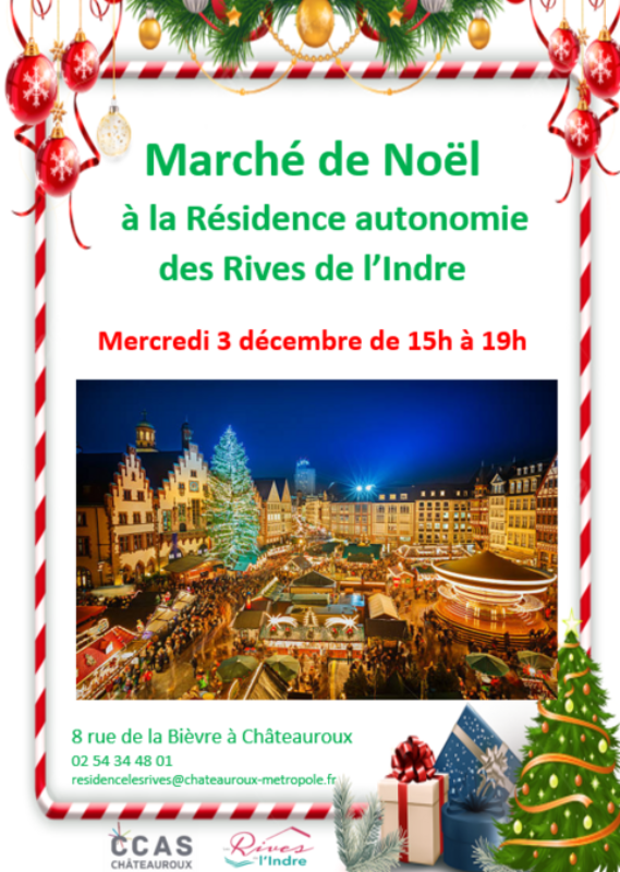 Le 03 Décembre 2025 Ajouter à mon Agenda Google Manifestation familiale / pour enfants 8 Rue de la Bièvre 36000 CHATEAUROUX de à À propos Date Situation Informations de contact Retour à la liste La Résidence des Rives de l'Indre vous invite pour son marché de Noël. Plus d'informations prochainement ! Date Le 03 Décembre Mercredi Ouvert de 15h à 19h Situation Avis Ajouter un avis Annuler la réponseVotre adresse e-mail ne sera pas publiée. Les champs obligatoires sont indiqués avec *Nom - Prénom * Email * Enregistrer mon nom, mon e-mail et mon site dans le navigateur pour mon prochain commentaire. Votre note sur 5 : Commentaire