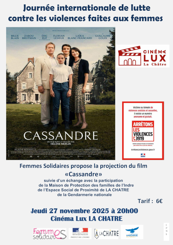 Dans le cadre de la Journée internationale de lutte contre les violences faites aux femmes, Femmes solidaires propose un échange-projection avec le film : Cassandre