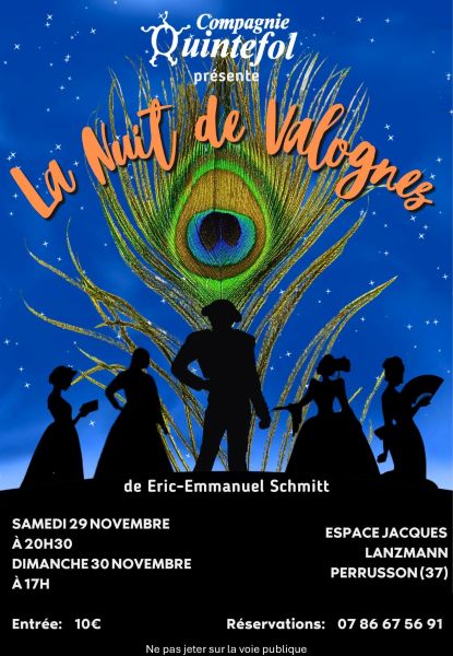 La compagnie Quintefol a le plaisir de présenter la pièce de Eric Emmanuel Schmitt "la Nuit de Valognes". Dans cette pièce, écrite par le dramaturge français le plus traduit au monde, 5 femmes trahies par Don Juan sont réunies pour faire le procès du séducteur.