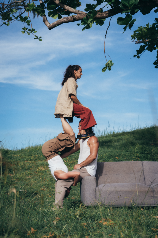 Tinn tout’ !, expression créole qui se traduit par « Éteignez tout ! », c’est un peu L’An 01 de la compagnie Ziguilé : on arrête tout, on jette les clés, on prend le temps et c’est pas triste !