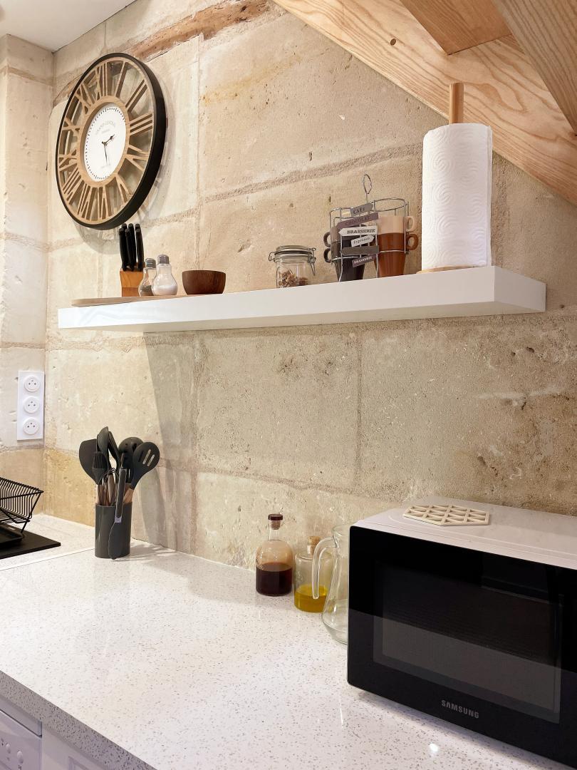 Its cozy interior, its decoration and the quality of the materials combined with a dream location offer your gîte the perfect ingredients for a stay synonymous with success. Ideal for 2 adults and 2 children with its second mezzanine bedroom (limited ceiling height), your pied-à-terre enjoys an ideal location both for enjoying a small, lively tourist town and its shops on foot. , its restaurants but also to discover the thousand and one riches of Touraine very easily accessible: Chinon, Tours, Rigny-Ussé, Villandry, Langeais but also Amboise, Chenonceau or the Beauval Zoo are as many gems as you can visit to experience beautiful emotions and return with wonderful memories. Touraine is also a land of vineyards (tasting to be planned at our winegrowers), bike or canoe rides, and the superb Château de l'Islette, the castle of the loves of Camille Claudel and Rodin is only 5 minutes by car .