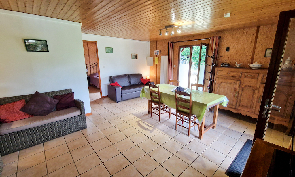 - Gite ** avec terrasse donnant directement sur l'étang, 3 à 4 personnes : - Séjour avec canapé lit, salle à manger, coin salon, TV-Vidéo - Cuisine avec gazinière 2 becs, four électrique, micro-ondes, frigo-congélateur, aspirateur, nécessaire de repassage, batterie de cuisine, friteuse, appareil à raclette, fondue ... - Salle de bain,douche lavabo WC - Chambre lit 2 personnes, nécessaire bébé sur demande (lit-chaise haute-coussin à langer-baignoire) - Terrasse avec barbecue & salon de jardin - Spa privatif en option Pour les pêcheur : Possibilité de mettre un biwy.
