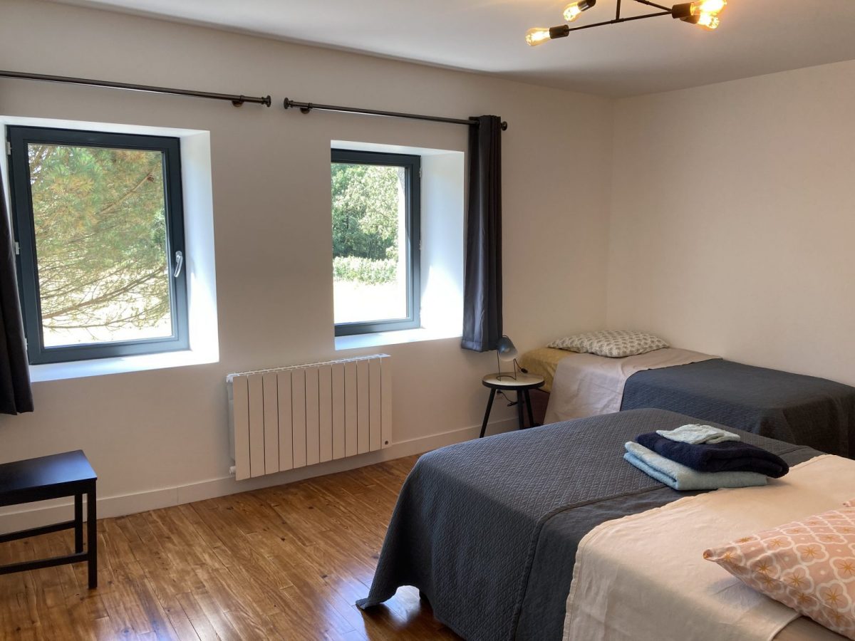 • Grande pièce de vie avec cuisine ouverte (plaques de cuisson, four, micro-ondes, combiné réfrigérateur congélateur XL, lave-vaisselle, cafetière, bouilloire, grille-pain) et coin thé (2 fauteuils autour d'un guéridon), salon spacieux avec TV et jeux de société, 5 chambres (3 lits doubles, 7 lits simples), 2 salles d'eau spacieuses et 3 wc, buanderie (lave-linge, étendoirs). Cour ouverte sur paysage avec vue sur la Chaîne des Puys. 2 barbecue fixes, salon de jardin, portique avec balançoire, cabane en bois. Plan d'eau privé à 800 mètres avec chalet, tables, chaises, fauteuils, bouées, paddles.