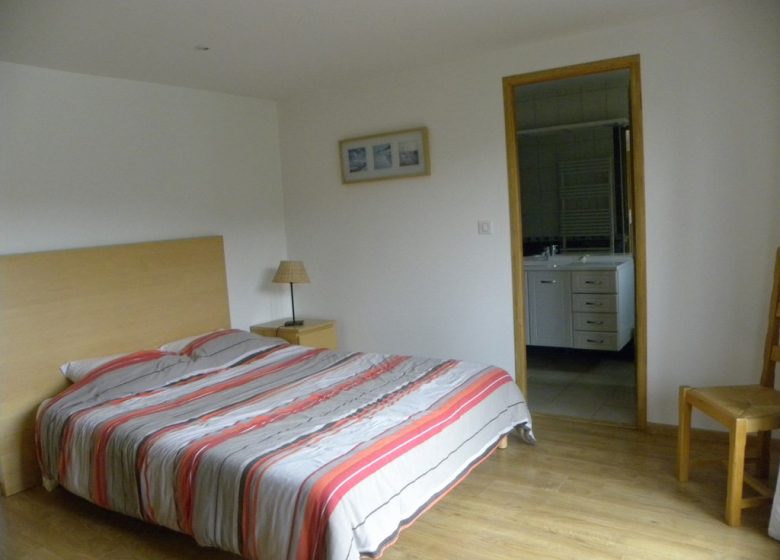 Gîte n°1 de 110 m² pour 4 à 5 personnes, équipé, salon, cuisine aménagée, 2 salles d'eau, wc en suite, 2 chambres