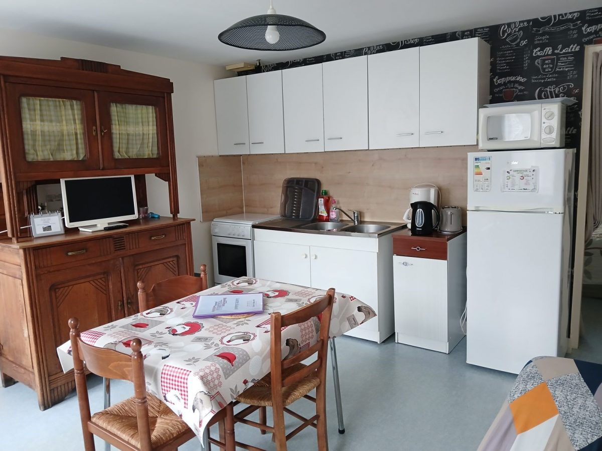 d’appoint) et télévision, espace repas, coin cuisine équipée (four, plaques