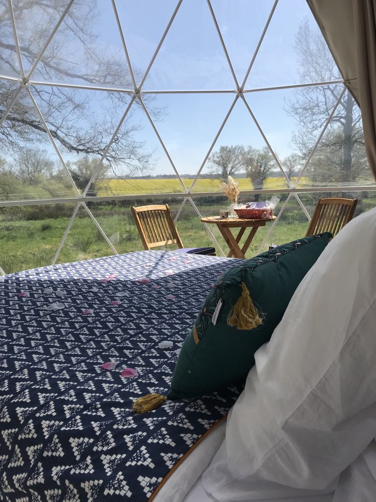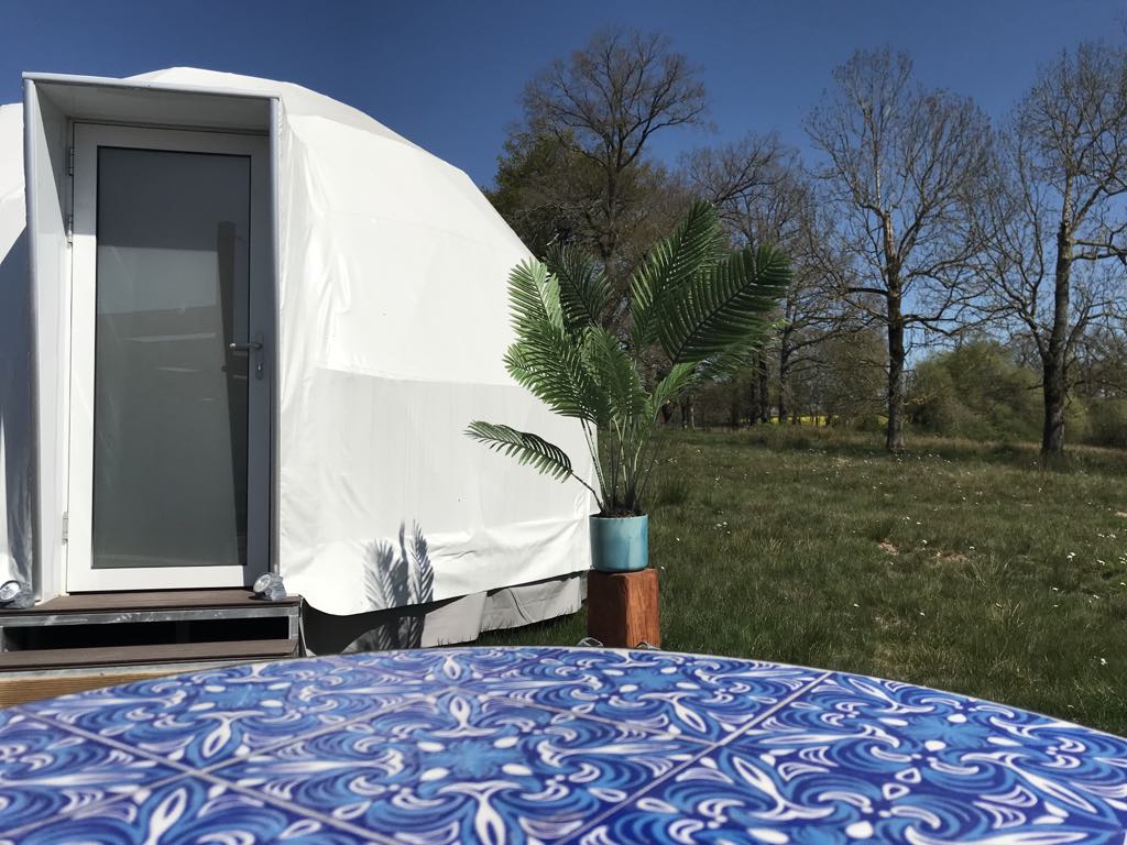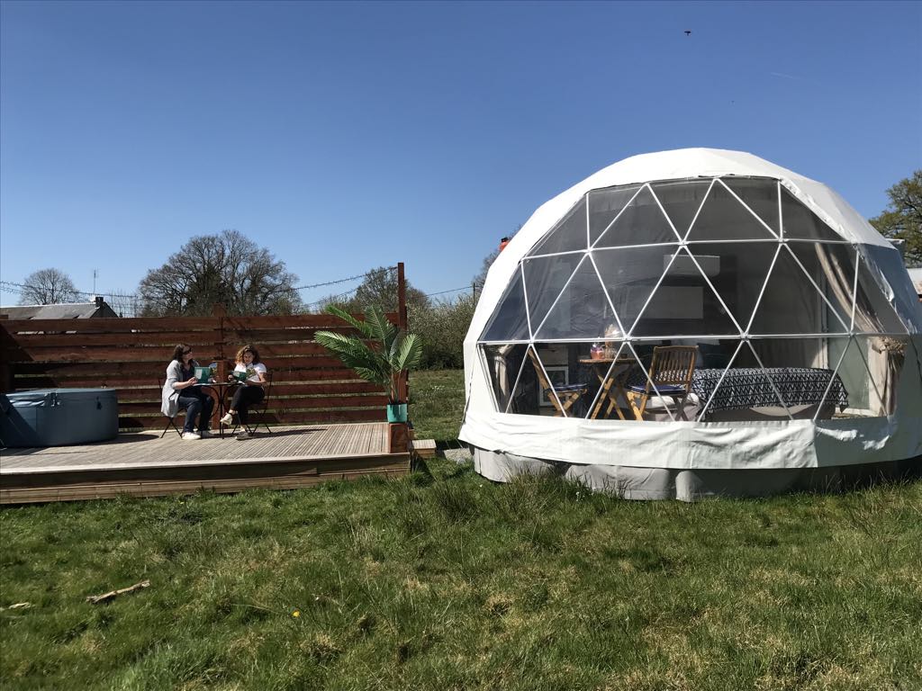 2 domes géodésique avec terrasse et jacuzzi privé pour un séjour romantique.