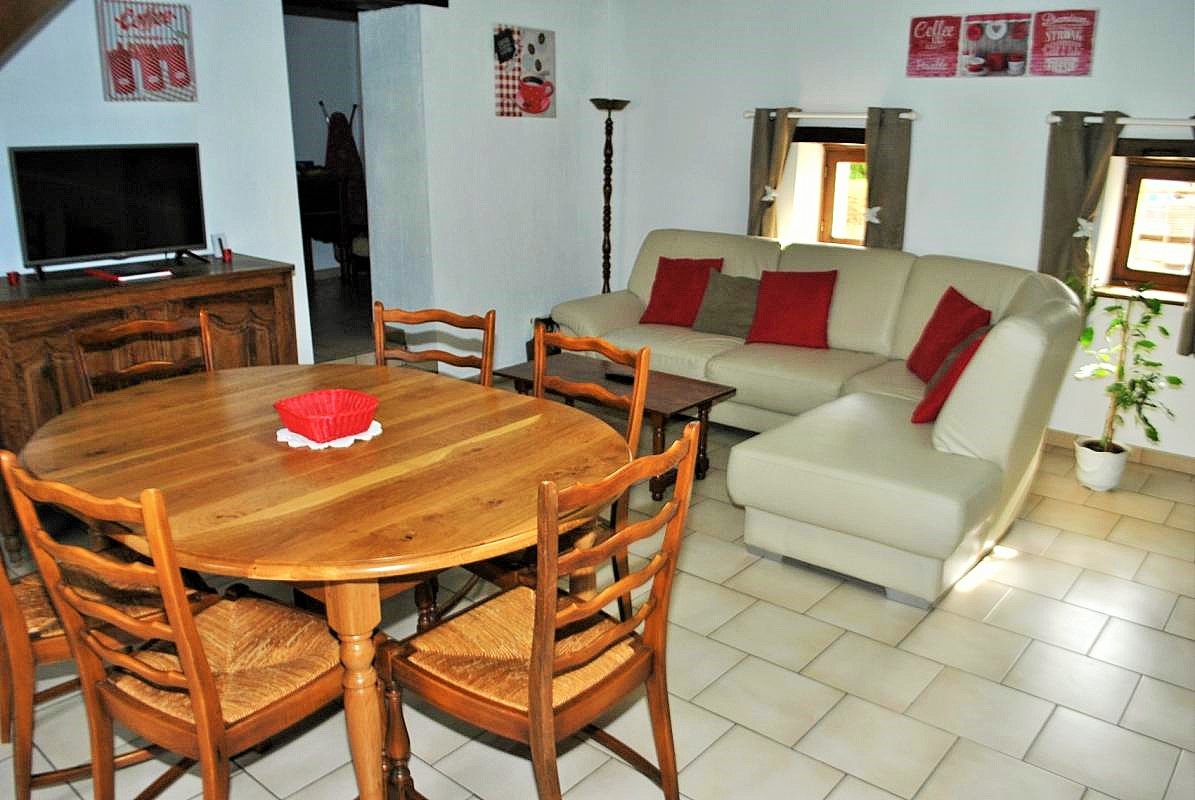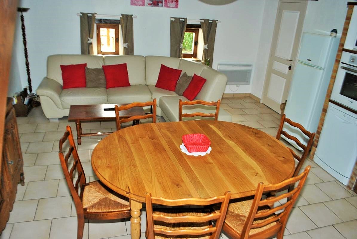Gîte aménagé dans une grange restaurée faisant face à l'habitation des propriétaires et ayant un gîte à chacune de ses extrémités, sur 1,5 ha de terrain.