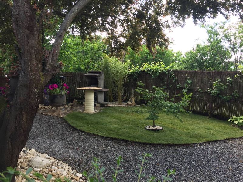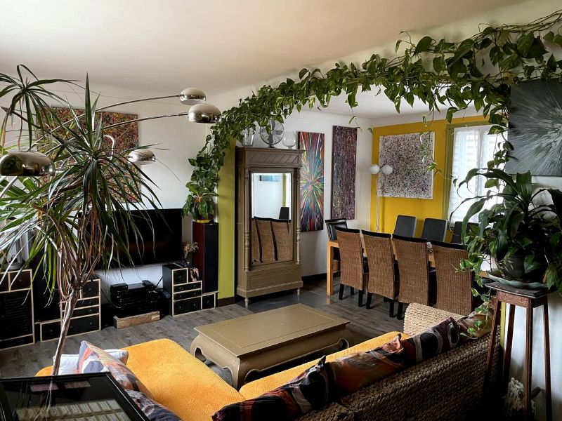 Pour les amoureux de peinture abstraite, la maison est décorée de multiples toiles colorées qui enjolivent les espaces de vie. Une terrasse, un salon d'été et un jardin ombragé composent les extérieurs pour des moments agréables.
