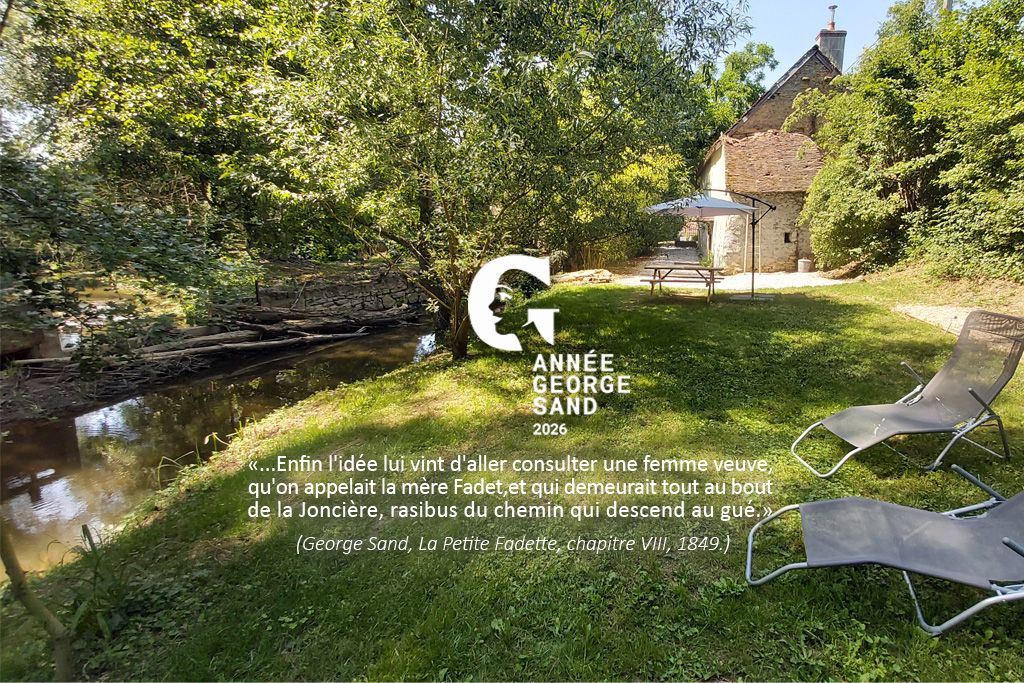 Situé à NOHANT, à - de 5 mn des chapelles romanes & châteaux médiévaux mais aussi à - de 5 mn des commodités offertes par la ville de La CHATRE, le REPAIRE du MOULIN NEUF a les particularités d'être la « demeurance» authentique de l'héroïne du roman « LA PETITE FADETTE » et d'avoir son pas de porte au pied du chemin creux qu’empruntaient régulièrement George SAND & ses célèbres amis en quête de ressourcement aux abords de la rivière.