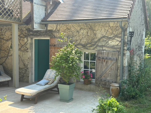 De plain-pied, il s’ouvre sur une grande terrasse privative, aménagée pour savourer les petits plaisirs du plein air, entre soleil et ombre, calme et chant des oiseaux. Le vaste jardin qui entoure la propriété s’offre à vous : arbres centenaires, potager en permaculture, ruches, verger, poules et même une petite tortue… un véritable écosystème vivant où chaque élément trouve sa place.