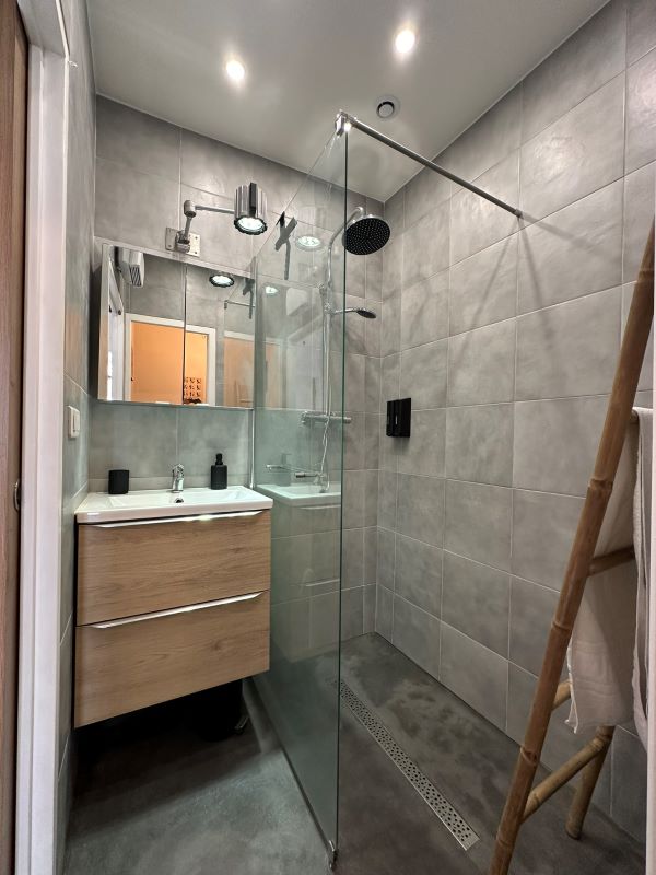 En entrant, le couloir en pierres apparentes donne sur un salon chaleureux, puis sur la cuisine tout équipée. Salle de bains avec grande douche à l’italienne. A l’étage, le pallier distribue 2 chambres, l'une avec lit queen size électrique ; l'autre, lit une 1 personne avec coin travail. Toutes commodités accessibles à pied (gare, rues commerçantes, restaurants, …).