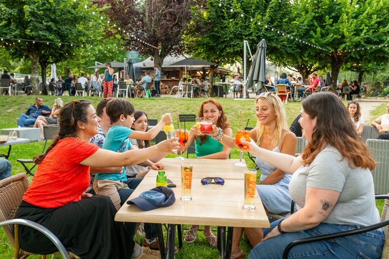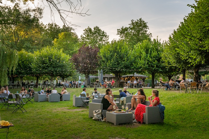 Boissons, glaces, restauration locale et artisanale. En extérieur, sur les bords de l'Indre. Terrasse ombragée, aire de jeu, terrain de pétanque et parking. Concerts gratuits.