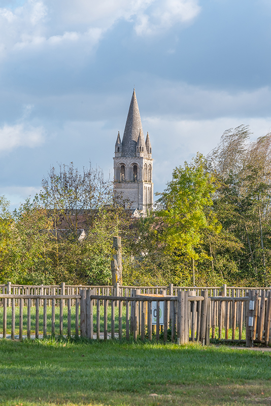Unique vestige de l'abbaye sœur de Cluny, ce clocher de pierre grise haut de 42 mètres témoigne de la splendeur passée de la ville de Déols, voisine de Châteauroux.