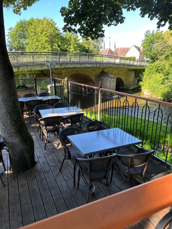 De plus, le restaurant possède une terrasse ombragée où des tables se répartissent autour d'un grand séquoia, au bord de la rivière, et offre ainsi une ambiance unique !