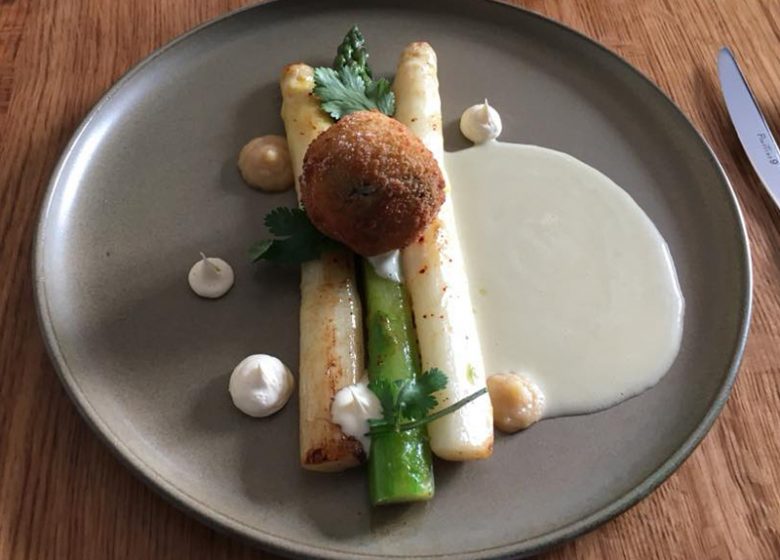 Gaëtan Évrard, cuisinier d'instinct et d'instant, puise son inspiration dans ses souvenirs d'enfance, le goût des aliments, les sensations qui l'ont marqué. Pointilleux sur le choix des produits en fonction des saisons, il assume des partitions audacieuses dans le travail de ses recettes.